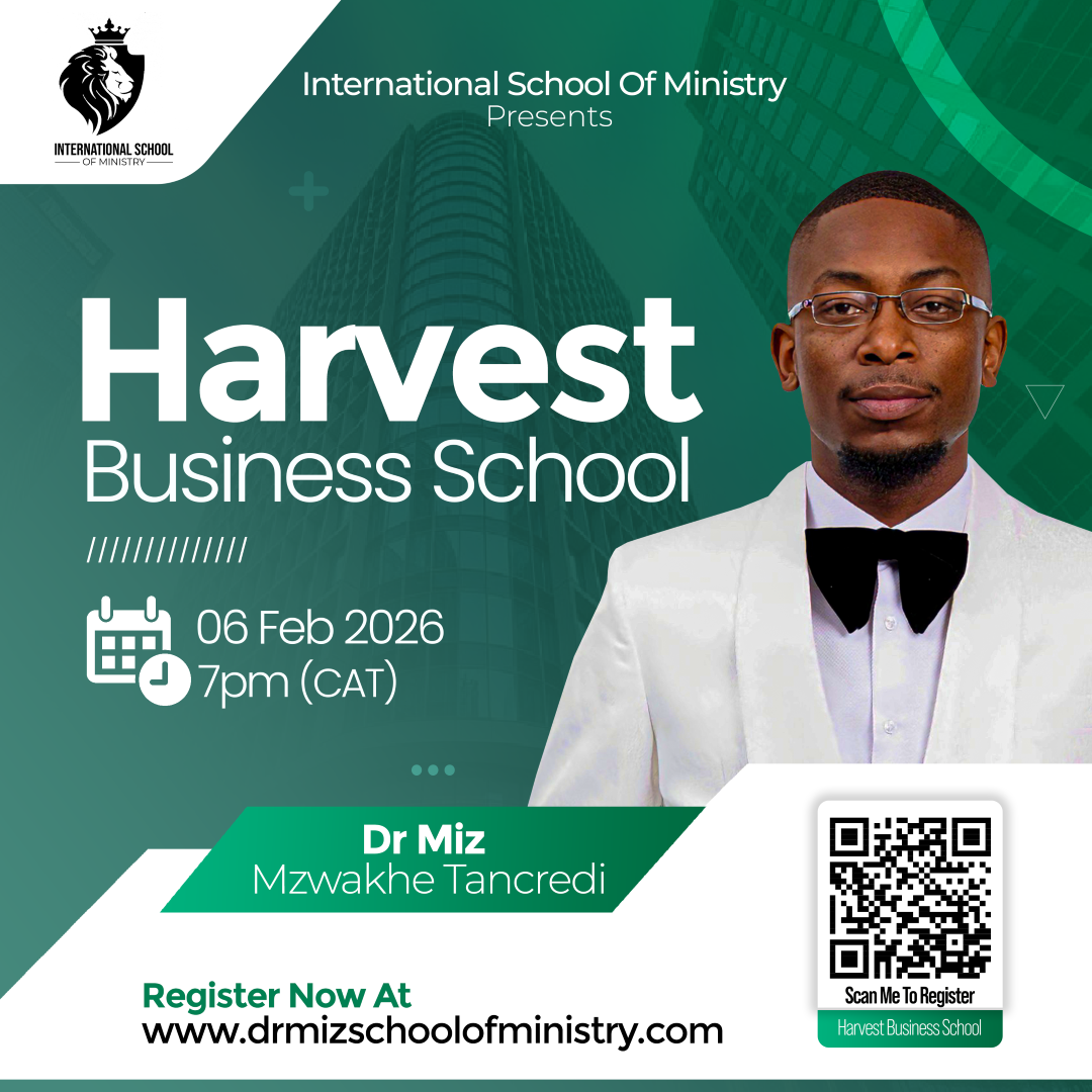 Welcome to Harvest Business School, presented by the International School of Ministry. Our mission is to empower aspiring entrepreneurs and business leaders to conduct their ventures in alignment with divine principles. Under the guidance of Dr. Miz Mzwakhe Tancredi, join us on February 6, 2026, at 7 PM CAT for an enlightening journey into “Doing Business God’s Way.”